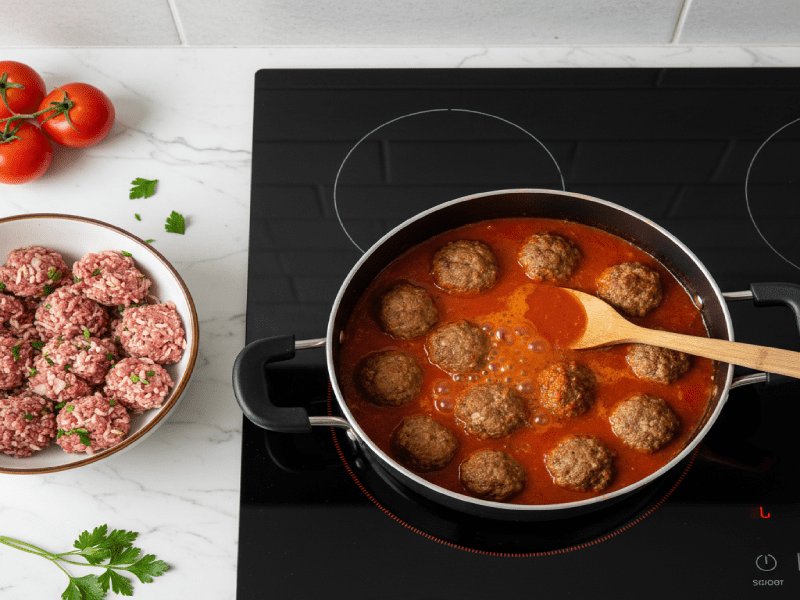 کوفته هایی که در مرحله قبل آماده کردید را به سس در حال جوش اضافه کنید. کوفته ها را به آرامی بیندازید. حرارت را کم کنید و درب قابلمه را برای 20 دقیقه تا نیم ساعت بگذارید.